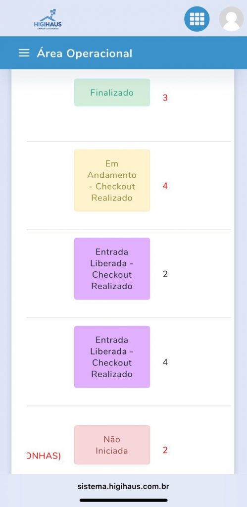 Cada colaborador vê apenas os imóveis que precisa limpar e recebe instruções no app.